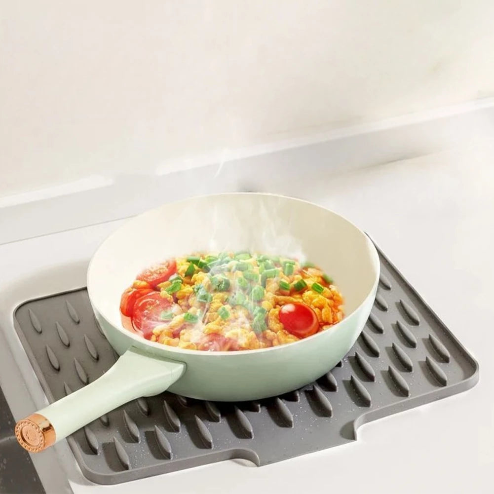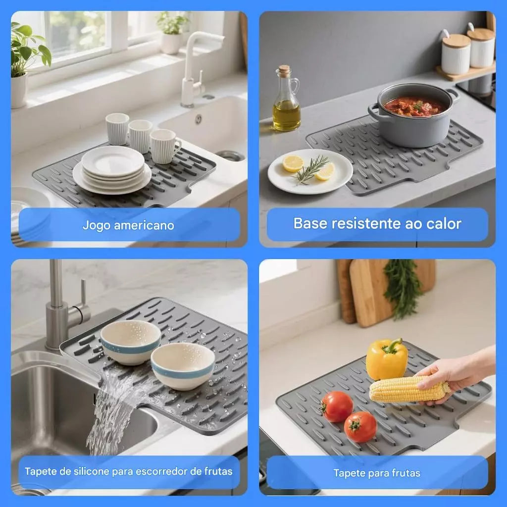 Seu design em silicone de grau alimentício permite usar como escorredor, apoio térmico ou base antiderrapante. Compacta e eficiente, encaixa perfeitamente em qualquer cozinha!
