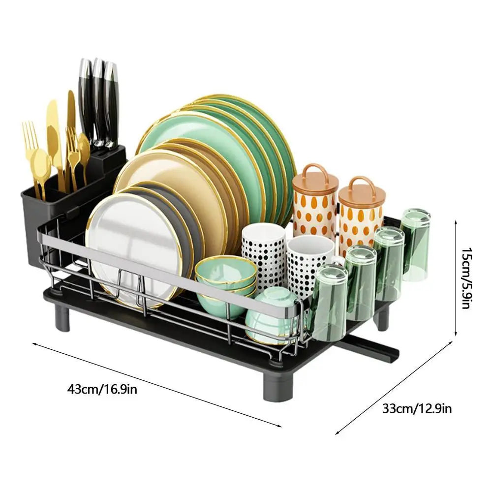 Com suas dimensões compactas de 43cm x 33cm x 15cm, este escorredor de louças de inox se adapta facilmente a qualquer ambiente, economizando um espaço precioso na sua bancada ou na sua pia.