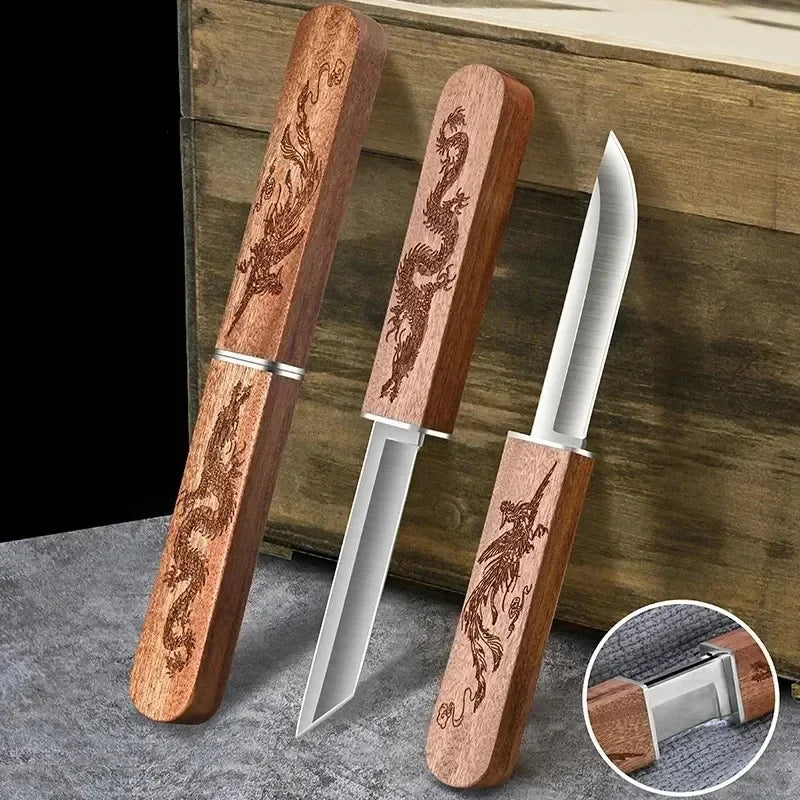 Com acabamento manual, detalhes de dragão e fênix entalhados e lâminas duplas afiadas, ela é feita para impressionar — e entregar desempenho de alto nível, seja em casa ou no churrasco.