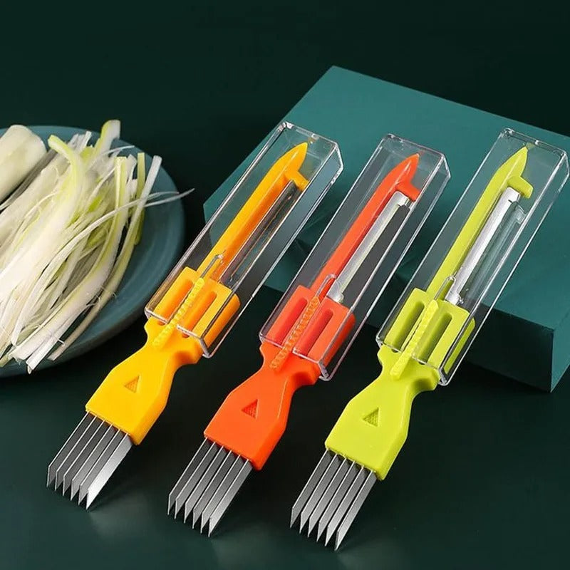 ✔️ Corte Julienne – cria tiras finas e uniformes de legumes, ideal para saladas, stir fry e decoração