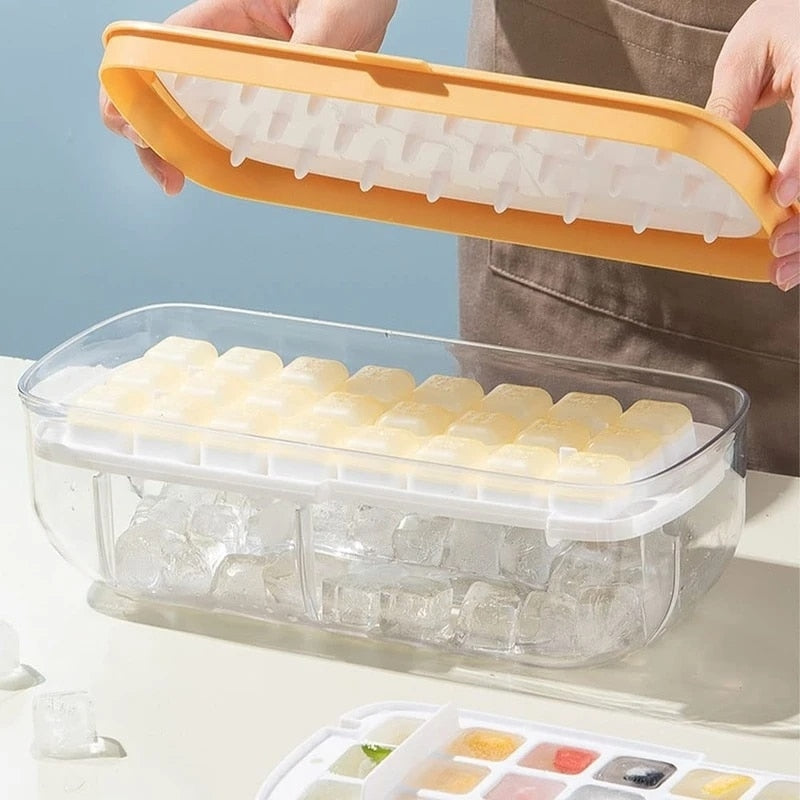✅LIBERA TODO O GELO EM SEGUNDOS: Congele seu gelo com a Forma de Gelo Prática que só precisa de 1 segundo para liberar 24 unidades de cubos de gelo de cada vez com a placa de pressão e despeje na caixa de gelo para facilitar o acesso.