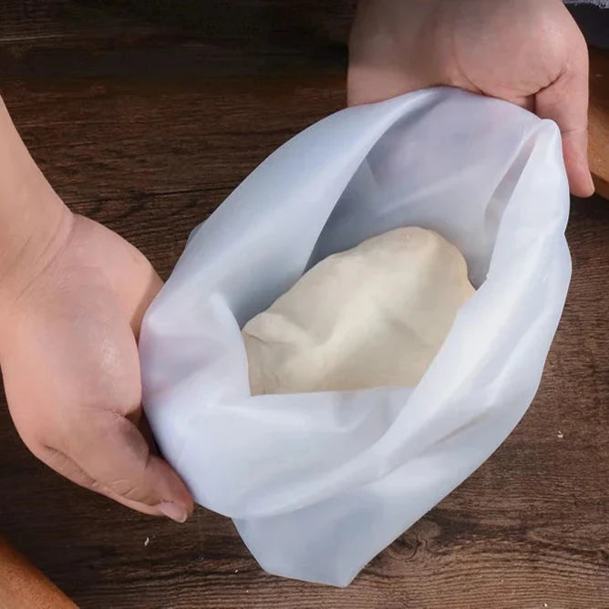 Com o Saco Preparador de Massa, você pode sovar pães, pizzas, tortas e muito mais de forma rápida, higiênica e sem grudar nas mãos ou na bancada.