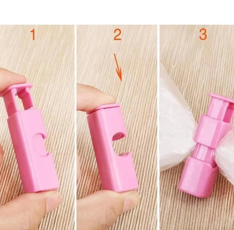Basta abrir o clipe, encaixar na borda do pacote e fechar. É simples assim! O Clipe Inteligente de Lacre sela os pacotes de forma eficiente, mantendo o ar fora e preservando a qualidade dos alimentos.