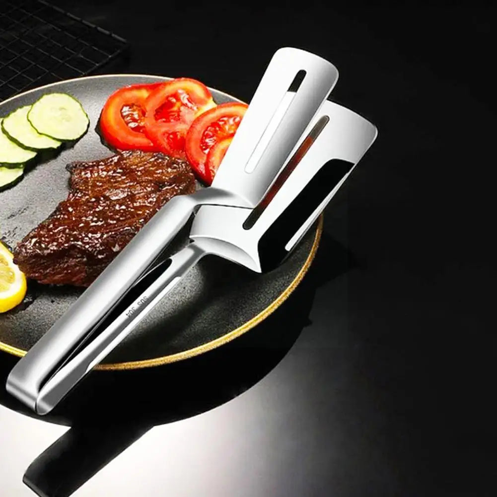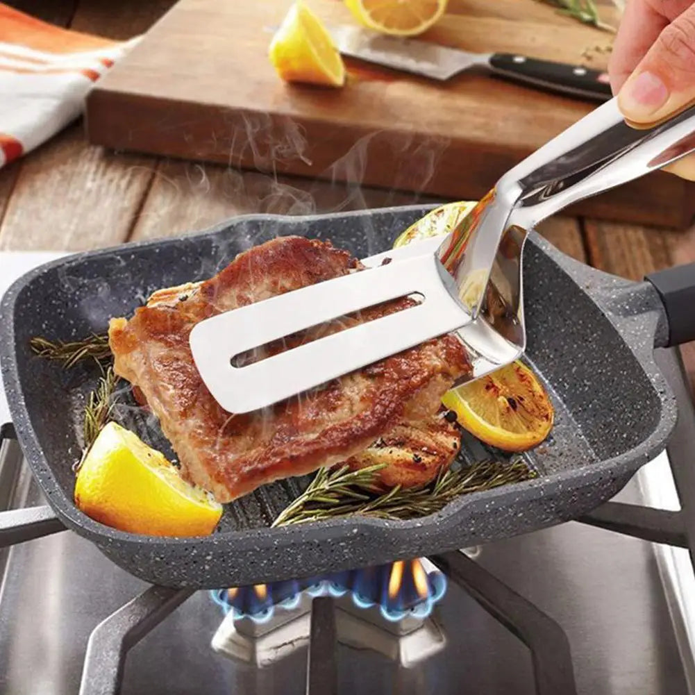 - MULTIUSO: Não é apenas feito para fritar, mas também como um auxiliar para cozinhar. Ele corta e pás, ensanduichando bifes e tornando-os fáceis de virar, um grande facilitador para churrasco também. O design de esvaziamento especial facilita o vazamento de óleo e reduz o excesso de óleo. As pinças de boca larga são fáceis de agarrar, sejam vegetais, bifes, carnes ou pão.