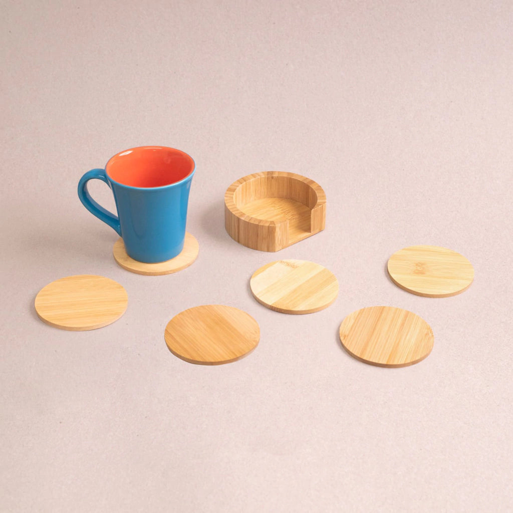 Transforme sua experiência à mesa com o Jogo de Porta Copos Redondo em Bambu 6PCS! Uma escolha perfeita para quem busca harmonizar elegância e consciência ambiental em seu dia a dia.