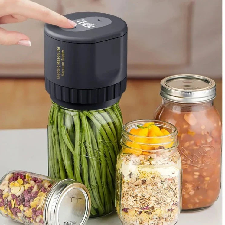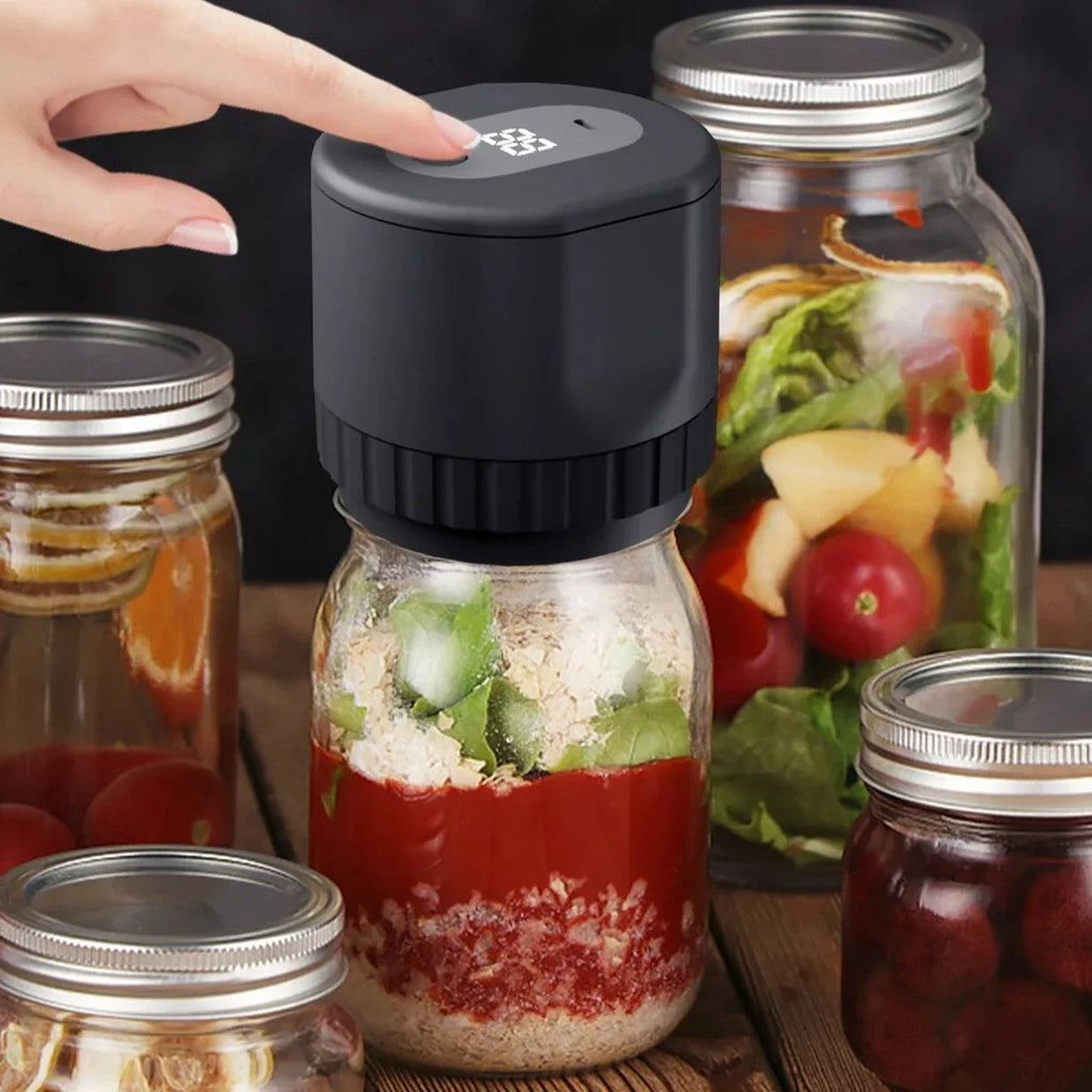 Mãos Livres, Cozinha Descomplicada: Esqueça o bombeamento manual! Com nossa Tampa Conservadora de Alimentos elétrica, você sela seus potes com apenas uma mão, enquanto a outra fica livre para segurar o pote. Ideal para quem adora praticidade e organização na cozinha.
