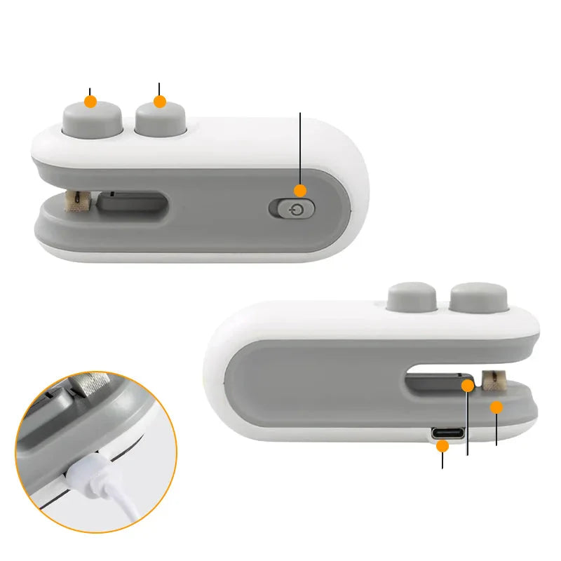 • Vedação e Corte: Além de vedar, o vedador possui uma lâmina oculta para cortar com precisão os sacos plásticos. Ideal para guardar alimentos e evitar desperdício de forma prática.